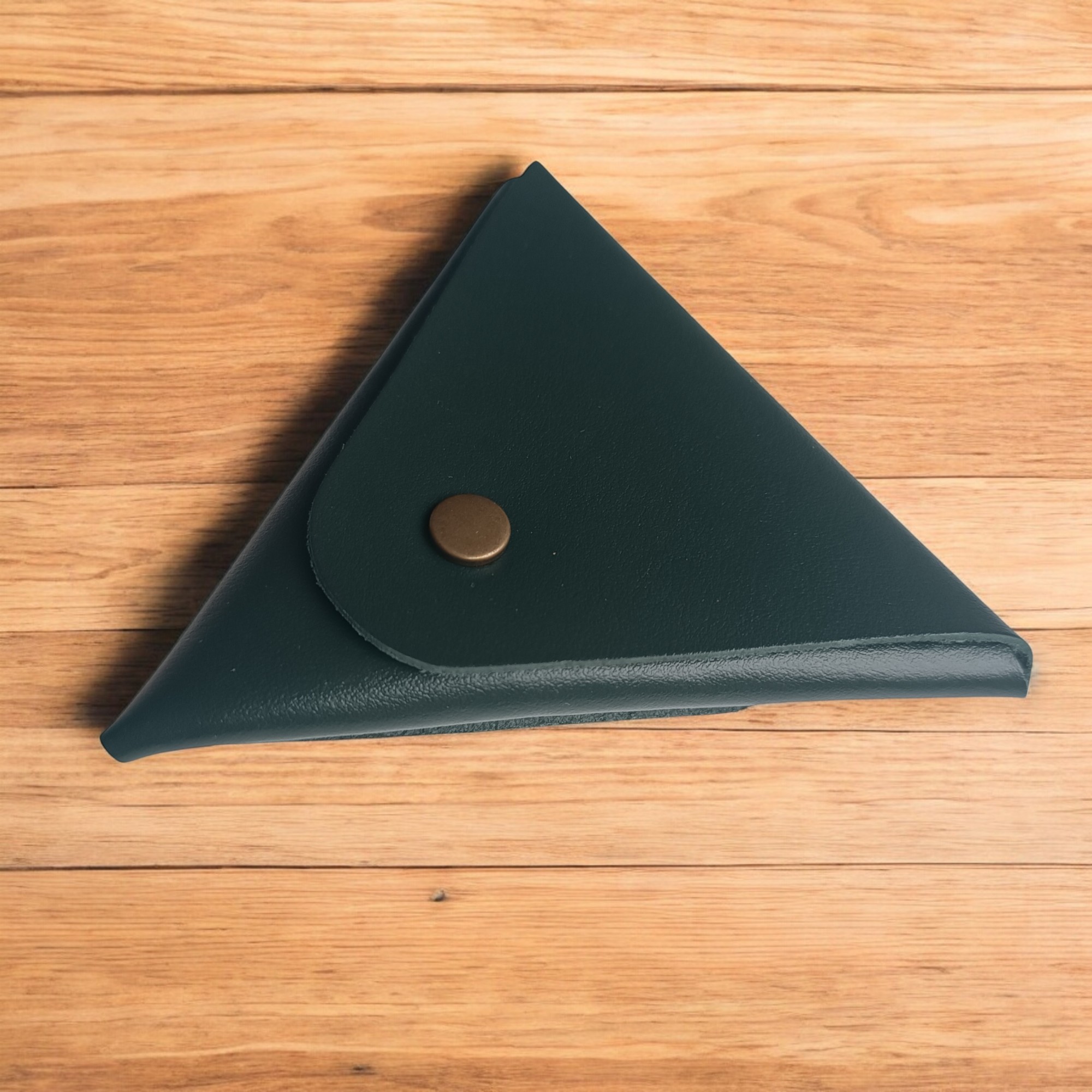 Porte-monnaie triangle en cuir — fait main (boutons métal vieilli)